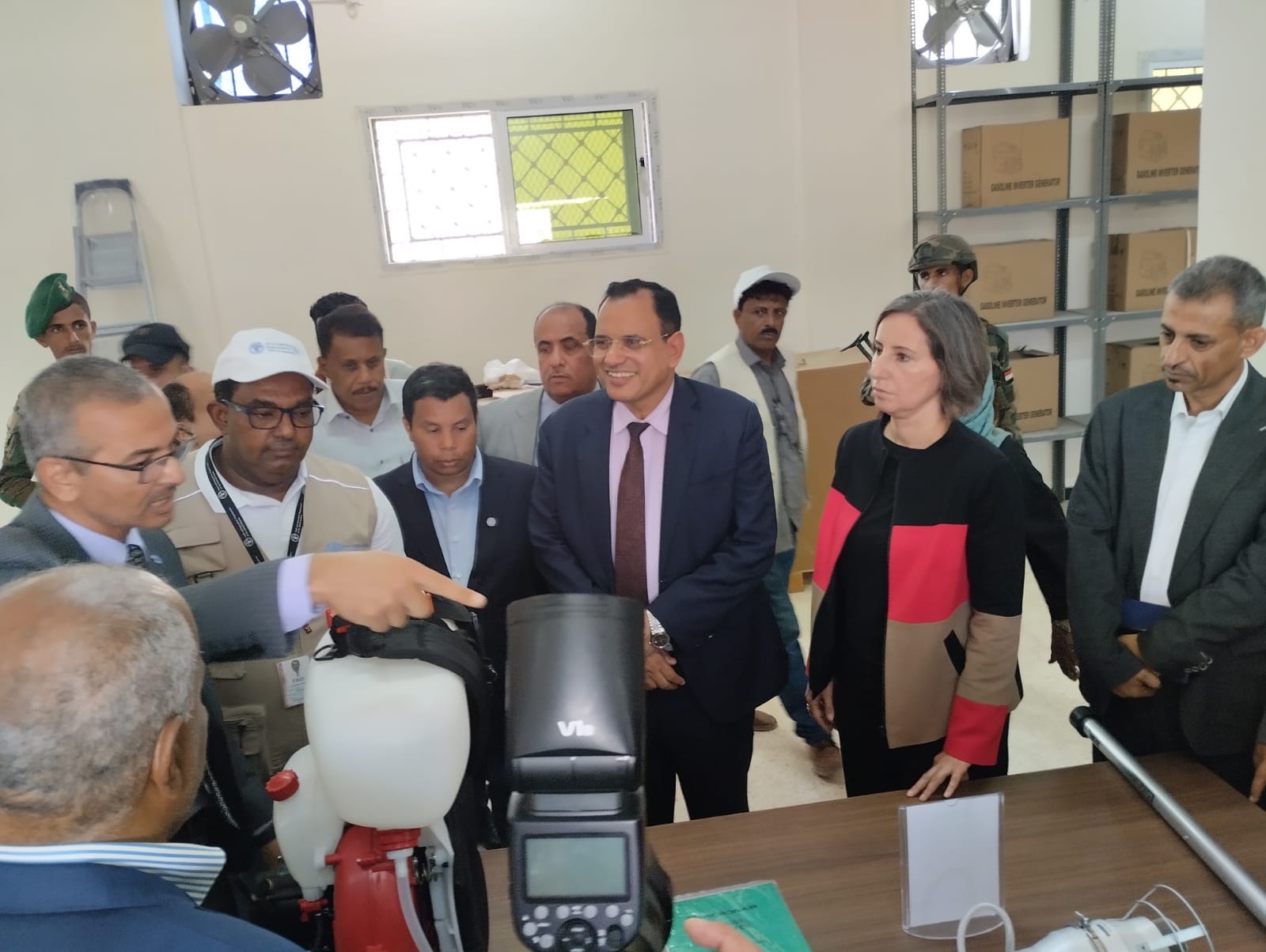 افتتح معالي وزير الزراعة والري والثروة السمكية اللواء / سالم عبدالله السقطري بمعيّة الدكتور حسين جادين الممثل المقيم لمنظمة الأغذية والزراعة للأمم المتحدة “الفاو”والمدير القطري للبنك الدولي في اليمن الدكتورة دينا ابوغيداء وبحضور علي الشيباني مدير عام مركز مكافحة الجراد والمهندس طارق ناصر حسين المدير التنفيذي لشركة فرست لاين والمقاول المنفذ في إنجاز مركز مكافحة الجراد الصحراوي صباح اليوم المبنى الرئيسي لمكافحة الجراد الصحراوي بمديرية دارسعد في العاصمة عدن والذي يأتي ضمن مشروع الإستجابة للجراد الصحراوي باليمن والذي تنفذه منظمة الأغذية والزراعة للأمم المتحدة “الفاو” بدعم من البنك الدولي