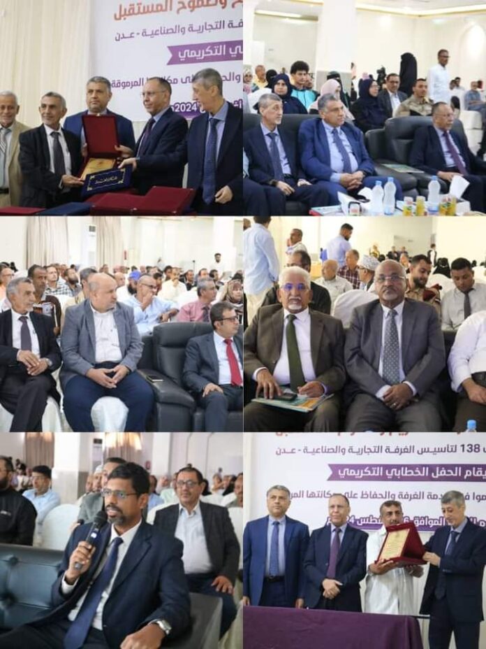 نظمت الغرفة التجارية و الصناعية صباح اليوم في العاصمة عدن الحفل الخطابي و التكريمي بمناسبة الذكرى 138 لتأسيسها، وقد تم تكريم الرجال الذين ساهموا في خدمة الغرفة والحفاظ على مكانتها المرموقة تحت شعار غرفة عدن عراقات تاريخ وطموح المستقبل.