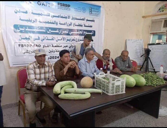 لحج / حكيم الشبحي في إطار مشروع تعزيز الأمن الغذائي في اليمن، نظّم الصندوق الاجتماعي للتنمية صباح اليوم الثلاثاء 27 أغسطس 2024 “اليوم الحقلي للمزارعين في قرية القريشي مديريتَي الحوطة وتبن بمحافظة لحج. وقد شهد الحدث حضور وكيل مكتب الزراعة في المحافظة الأخ عبدالملك ناجي وممثلي الصندوق الاجتماعي للتنمية من عدن بالإضافة إلى مندوبين من منظمة الفاو. يهدف “اليوم الحقلي” إلى تزويد المزارعين في لحج بالخبرات والدعم اللازم لتحسين إنتاجيتهم الزراعية. ومن خلال هذا الحدث يتم توفير المعرفة العملية والتقنية التي تعزز من مهارات المزارعين، مما يساهم في تحسين استدامة الإنتاج الزراعي في المنطقة. كما يمثل “اليوم الحقلي” فرصة لتقييم تأثير المشروع وقياس مدى استفادة المزارعين من الدعم المقدم فضلاً عن كونه منصة لتبادل الخبرات وحل المشكلات بالتواصل المباشر بين المزارعين والمنظمين. ويُعَدّ الحدث جزءاً من جهود دعم التنمية الزراعية وتعزيز الأمن الغذائي في المنطقة عبر التعليم والتوجيه المباشرين