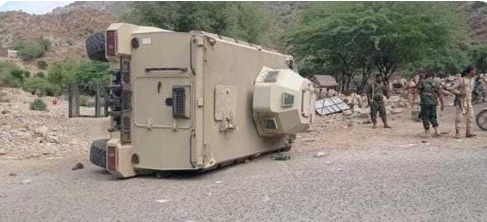 أصيب جنديان سعوديان صباح اليوم الثلاثاء بجروح إثر انقلاب مدرعة كانت ترافق موكب رئيس مجلس القيادة الرئاسي، الدكتور رشاد العليمي، أثناء زيارته إلى تعز. وقالت مصادر إعلامية، إن مدرعة كانت ضمن الموكب المرافق للعليمي، انقلبت على طريق كربة الصحى الرابطة بين محافظتي لحج وتعز. وأكدت المصادر أن الحادث أسفر عن إصابة جنديين سعوديين، كانا ضمن الموكب. ويزور العليمي، وعدد من أعضاء مجلس القيادة الرئاسي، وقيادات حكومية، محافظة تعز، وهي الزيارة الأولى له إلى المحافظة منذ أكثر من 10 سنوات