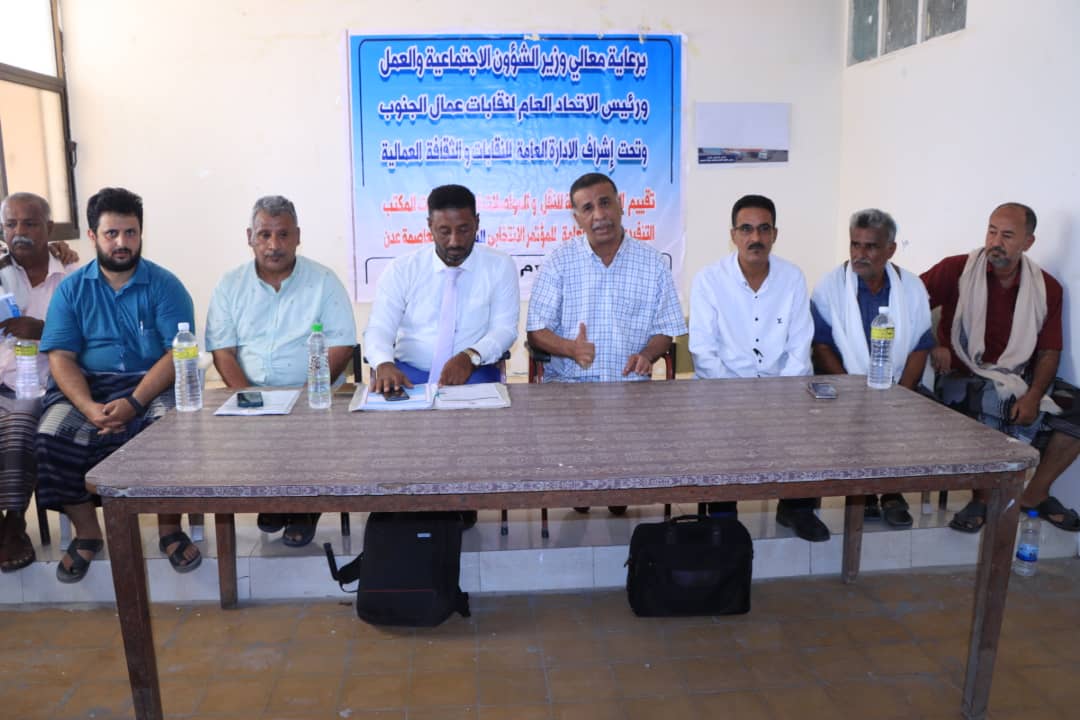 برعاية معالي وزير الشؤون الإجتماعية والعمل الدكتور محمد سعيد الزعوري وتحت إشراف الإدارة العامة للنقابات والثقافة العمالية عقدت النقابة العامة للنقل والمواصلات صباح اليوم مؤتمرها الانتخابي السابع واشهار مكتبها التنفيذي للنقابة العامة للنقل والمواصلات بمقر الاتحاد، نقابة الجنوب من اجل اعادة انتخابات للهيئة التنفيذية الجديدة وتفعيل نشاط دور المكتب التنفيذي للنقابة العامة للنقل والمواصلات بحضور الاخ سامي خيران رئيس اتحاد نقابات عمال الجنوب والاخ علي الشاعري الأمين العام اتحاد العام لنقابات عمال الجنوب ورئيس نقابة الشحن الثقيل ، الأخ عصام صلاح اليافعي والدكتور فيدل منذوق مدير عام الإدارة العامة للنقابات والثقافة العمالية بوزارة الشوؤن الاجتماعية والعمل بعدن بمشاركة أعضاء نقابة النقل والمواصلات.