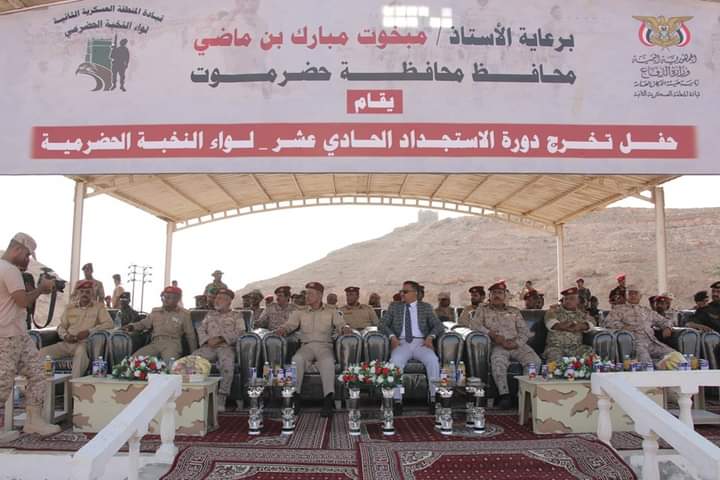 وأشاد اللواء الركن بارجاش ، قائد المنطقة العسكرية الثانية، بالدعم الكبير الذي قدمه التحالف العربي بقيادة المملكة العربية السعودية والإمارات العربية المتحدة لقوات النخبة الحضرمية، وذلك خلال حفل التخرج