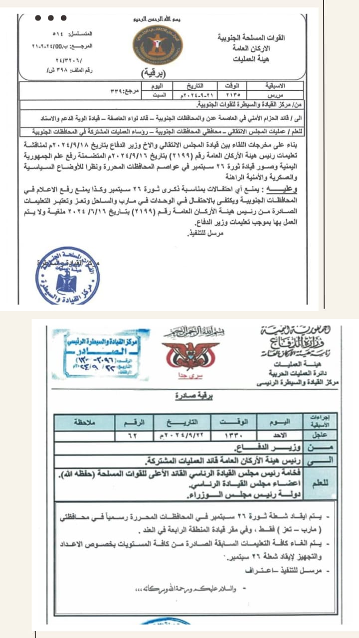 وجاءت هذه الخطوة استجابةً لتوجيهات مباشرة صادرة عن المجلس الانتقالي الجنوبي، والتي تم تضمينها في برقية رسمية، مُستثنيًا من هذه التوجيهات فقط مناطق مأرب وتعز والساحل الغربي، مما يعكس توجها واضحا لتحديد هوية الاحتفالات الوطنية في تلك المناطق.