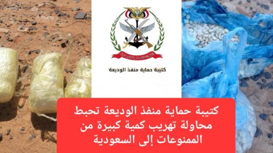 أعلنت كتيبة حماية منفذ الوديعة، إحباط محاولة تهريب كمية كبيرة من المواد الممنوعة إلى المملكة العربية السعودية عبر إحدى شاحنات النقل. وقالت الكتيبة عبر حسابها