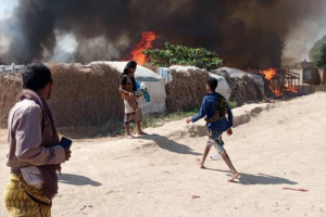 شبّ حريق هائل في مخيم للنازحين في مديرية خنفر بمحافظة أبين، مخلّفًا خسائر مادية كبيرة. وقالت مصادر محلية، إن الحريق التهم جميع مساكن النازحين المبنية من العش وكل ما فيها من مواد غذائية وإيوائية في مخيم “ميكلان” بمنطقة جول السادة بمديرية خنفر. وأوضحت المصادر، أن النازحين أصبحوا في العراء؛ نتيجة الحريق الذي التهم جميع مسكانهم دون تسجيل إصابات بشرية. من جانبه، أكد مدير الوحدة التنفيذية للنازحين في أبين، ناصر المنصري، إن النيران التهمت مخيم النازحين بمنطقة جول السادة ميكلان بمديرية خنفر محافظة أبين