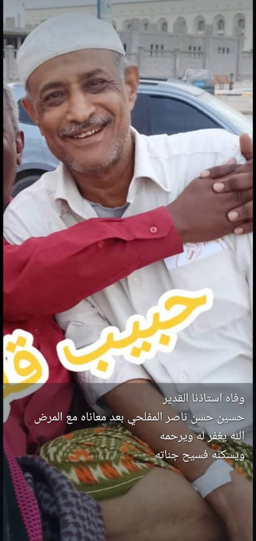 بقلوب مؤمنه بقضاء الله وقدره تنعي الهيئة التنفيذية للقيادة المحلية للمجلس الانتقالي الجنوبي بمديرية المكلا فقيدها المناضل عضو الهيئة التنفيذية الأستاذ حسين حسن المفلحي، الذي وافته المنيه أمس الجمعة، بعد صراع مرير مع المرض.